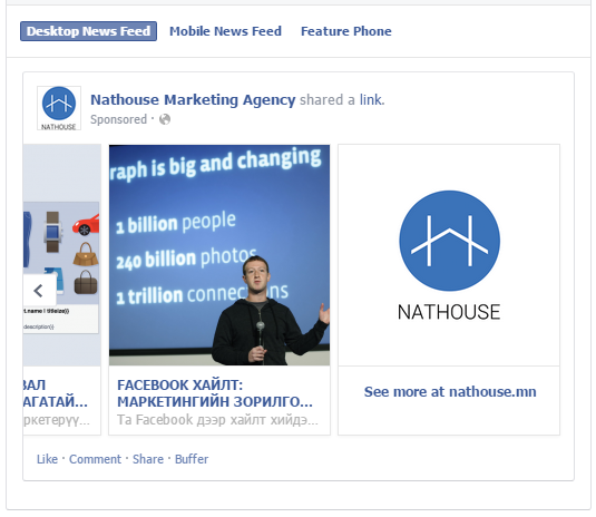Дэлхий даяар нийт 1.74 тэрбум хэрэглэгч, Монголд нийт Facebook хэрэглэгчдийн 94% нь гар утас ашиглан Facebook-т холбогддог. Тэгэхээр гар утас хэрэглэгчид сурталчилгааны үнэ цэнэтэй сегмент гэдэг нь ойлгомжтой.